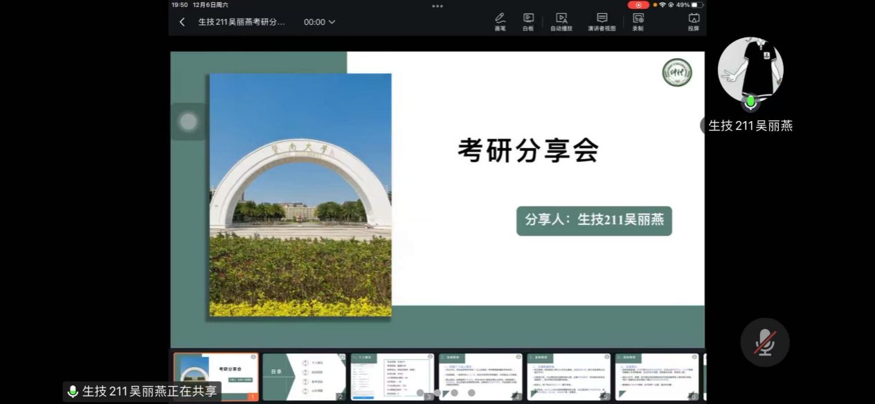 为充分发挥党建引领作用,助力考研学子逐梦前行,12 月 7 日,生命科学教工党支部与生命科学员工党支部结对共建,成功举办考研分享会。活动以考场规则指导、考研经验分享、答疑解惑为主要形式,为备战 2025 年考研的同学提供全方位支持,生命科学教工党支部教师代表唐辉武、梁定超,员工党支部优秀毕业生代表吴丽燕,以及支部全体考研学子参与本次活动。
