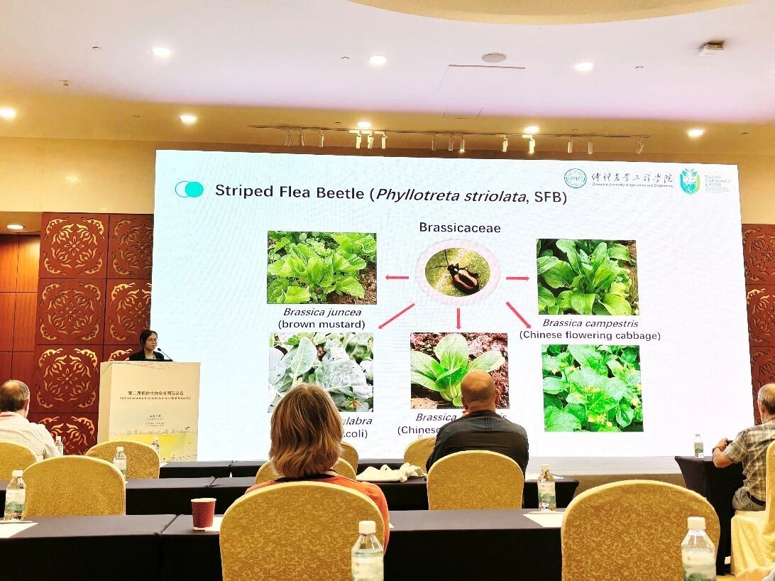 公司best365官网入口注册、农业农村部华南果蔬绿色防控重点实验室颜珣研究员和王惠杉首聘副研究员应邀参会。颜珣研究员在“绿色防控新技术和新产品”专题分会场作了题为“Control efficacy of three biocontrol factors against striped flea beetle, Phyllotreta striolata”(三种生物防治因子对黄曲条跳甲的防控效果研究)的学术报告。黄曲条跳甲是十字花科蔬菜的主要害虫,其幼虫和成虫危害严重影响作物产量与商品品质,造成严重经济损失。颜珣老师系统研究了昆虫病原线虫Steinernema carpocapsae、苏云金杆菌G033A可湿性粉剂与“滋润专家”农用植物油三者间的兼容性,及其对黄曲条跳甲的协同防效效果,为黄曲条跳甲的绿色防控提供了新策略,有助于推动化学农药的减量使用、生态环境保护与农业可持续发展。