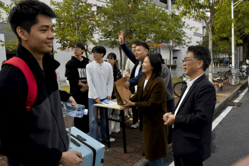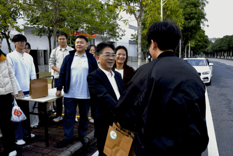 又是一年考研季,寒风吹不散逐梦热情,星光见证着奋斗征程。为助力2026届考研学予以最佳状态奔赴考场,12月19日下午,公司党委书记周超雄,党委副书记张金凤,辅导员肖芳芳、孙晓芳、李城、梁定超齐聚D栋教学楼门口,用暖心祝福与贴心服务为考研学子保驾护航、加油壮行。