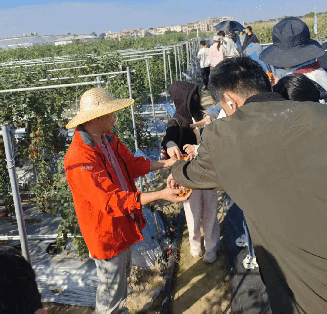 随后,师生们前往大田展示区。田间里,各类优良农作物品种整齐排布,包括甜玉米、糯玉米、观赏油菜、菜心、番茄、辣椒、等,不同品种的生长特性、栽培模式通过标识牌的文字和二维码扫码进行精准查阅。同学们兴高采烈的近距离观察了不同作物不同品种的生长形态,了解了不同作物的适栽条件、田间管理要点以及品种选育的重要性。大家主动提问,围绕田间病虫害防治、节水灌溉技术等实际问题与老师、基地工作人员展开交流,将课堂所学的理论知识与田间实际场景紧密结合,进一步深化了对农学专业核心内容的理解。