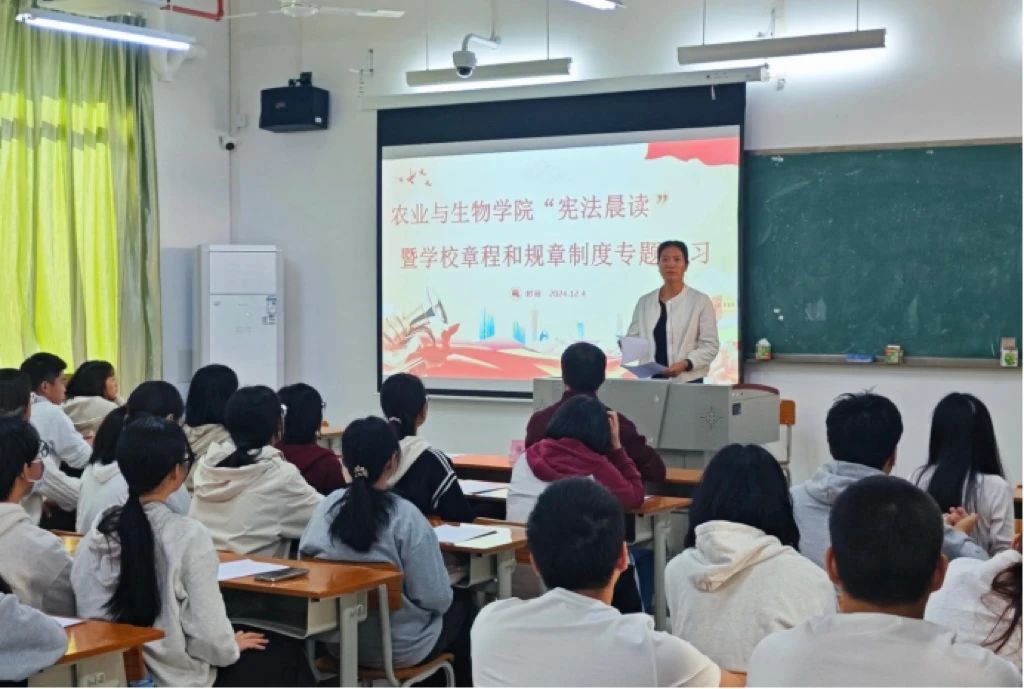 2024年12月4日,我们迎来了第十一个国家宪法日。为了传承和弘扬法治精神,进一步加深广老员工的宪法认知,best365官网入口注册于12月4日上午,在生命科学大楼A座509室举行了“宪法晨读”暨公司章程和规章制度专题学习活动。农业与生物公司党委副书记张金凤、辅导员梁定超和70余名员工代表参了加此活动。