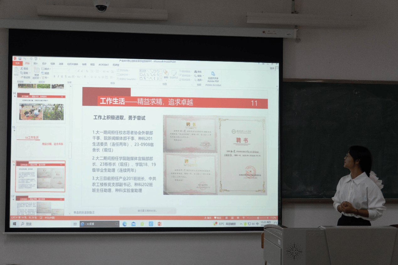 答辩结束后,张金凤进行了会议总结。首先,她提到当今社会人才竞争激烈,希望同学们能够有强烈的竞争意识,充分展现自己的综合实力。其次,她希望农生学子能在德智体美劳各个方面全面发展。第三,她希望候选人能够充分发挥模范引领作用,为营造良好的院风和学风做出应有的贡献。同时,她也鼓励农生学子以在座的同学为榜样,坚定个人的志向,不断努力追求进步。