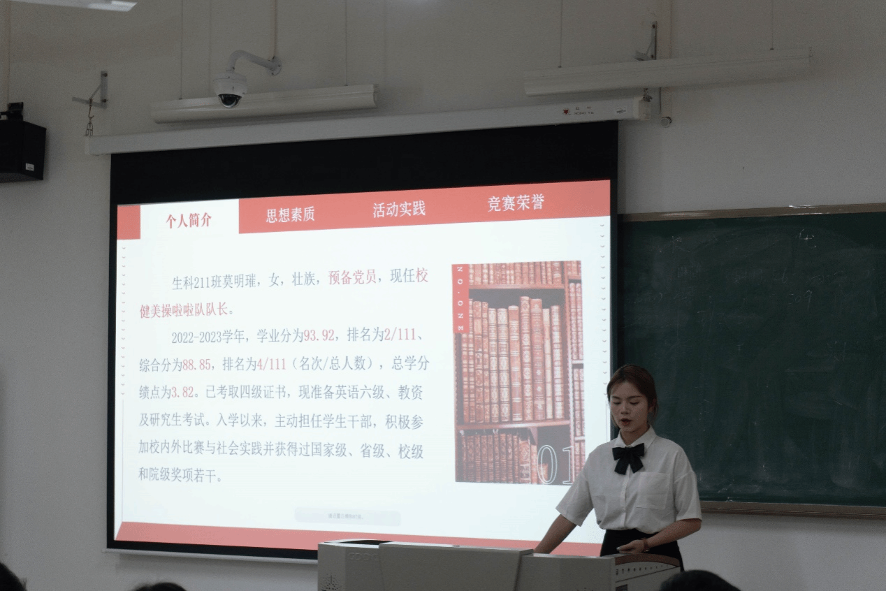 根据公司国家奖学金评分细则,经过个人申报、公司初审等环节,最终确定了8名符合奖学金申请要求的同学进行答辩环节。为确保国家奖学金的公平性,生科213李诗婷等8名入围国家奖学金答辩环节的同学按照抽签顺序依次上台答辩。在答辩过程中,候选人从基本情况、思想素质、学习成绩、科研经历、获奖情况、校内外实践经历等方面进行展示,充分展现了公司学子勤劳刻苦、敢于创新、追求卓越的精神风貌。评委们根据员工的现场演说情况进行提问和打分,并给予了建设性意见。