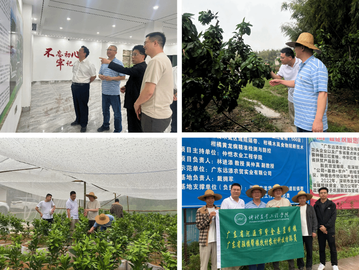 团队成员开展柑橘木虱种群监测与黄龙病田间检测工作驻镇帮扶工作队及当地农业龙头企业对驻镇帮扶科技特派员团队技术帮扶工作给予充分肯定,提出加大力度支持科技特派员团队帮扶企业资金资助,并与科技特派员团队签署帮扶农业企业科技合作协议。农业与生物公司党委书记周超雄、科技部副部长陈青春、驻镇帮扶工作队队长麦志勇、广东远添农贸实业有限公司董事长戴拥军出席签约活动。未来,驻镇帮扶科技特派员团队将继续主动下沉基层,配合驻镇工作队的工作部署,提供全方位农业科技支撑,务实帮扶企业,助力蓝塘镇农业企业高质量发展。