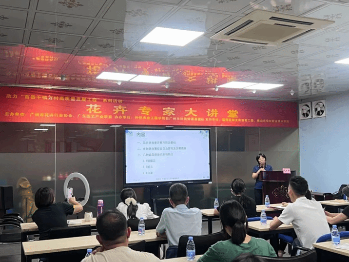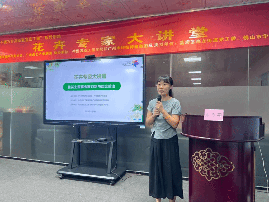 2024年8月1日,广州市科技特派员团队赴广州大观园艺科技有限公司开展一场主题为《盆花主要病虫害识别与综合防治》培训讲座。此次培训由广州市花卉行业协会梁文婷主持,特别邀请了best365官方网站程东美副教授主讲。吸引了众多盆花种植者和相关从业人员参与。
