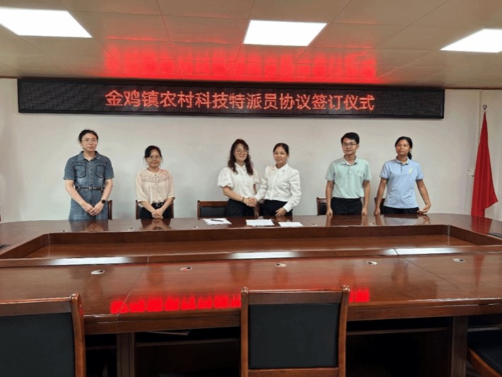 下午,特派员团队前往罗定市金鸡镇人民政府,分别就金鸡镇农村科技特派员帮扶工作及金鸡镇柔性人才引进签订了协议。签约仪式结束后,特派员团队与工作队及镇政府工作人员进行了深入交流,科技特派员团队将为金鸡镇的发展提供全方位的服务,金鸡镇政府也将全力支持科技小院的建设,促进技术创新及成果产生,解决生产技术问题,培养服务于金鸡镇农业产业的人才。