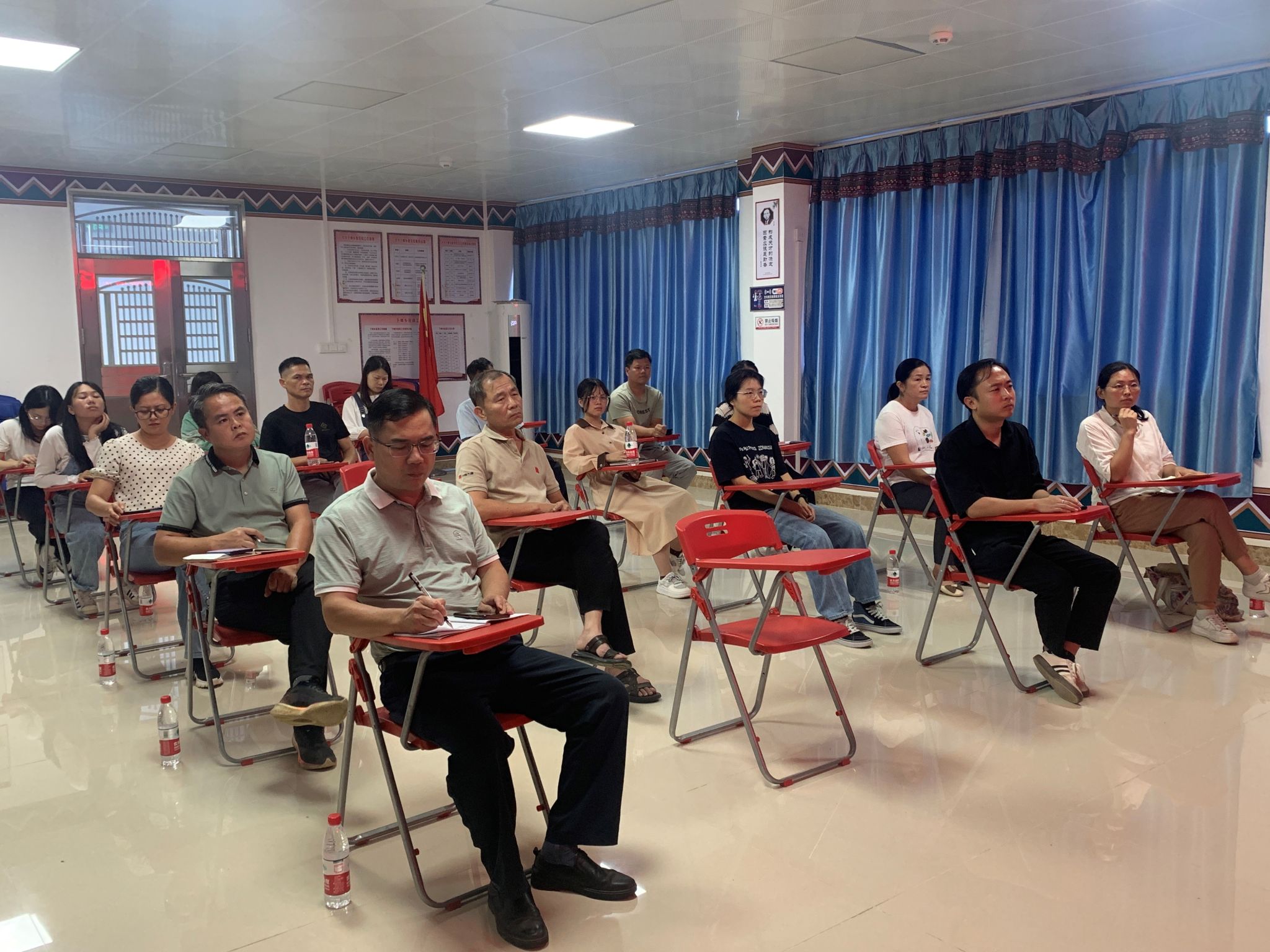 本次培训班邀请仲恺工程农业公司胡高喜副教授现场授课,乡内农民专业合作社、致富带头人、电商从业人员等20余人参加。在培训环节,胡老师用2个小时,深入浅出讲授“农产品直播带货实操技巧”。采用案例分析与理论知识相结合方式,围绕农产品直播营销特点和平台、农产品直播营销的前期准备、直播营销流程控制、直播营销技巧、直播效果追踪等五方面内容进行授课。通过多媒体演示、互动答疑等形式,学员们逐步掌握电商直播营销的基本内容,受益匪浅。