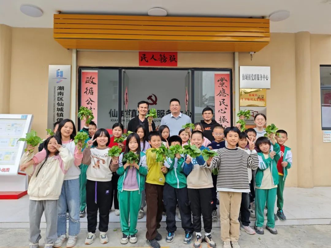 12月26下午,在仙城镇党群服务中心,特派员团队和驻镇帮扶工作队持续开展“四点半课堂”活动。孩子们从11月7日开始本学期“四点半课堂”,在老师的带领下亲操实干,播下希望的蔬菜种子,历经1个多月,完成了耕种管收整个环节。同学们每周四的下午四点半进行提苗、施肥、浇水、松土、生态防控等工作,比学赶超,细微的呵护每一颗的蔬菜,长势迷人,且近期已到了收获的季节,在工作队员们的帮助下,孩子们一个个喜笑颜开,逐一完成蔬菜的收镰、清根、翻土等事宜,高高的将蔬菜拂过头顶,仿佛一朵朵绿色的鲜花在争妍斗艳。活动结束后陈青春向孩子们科普了蔬菜病虫害防控小知识,并表示要持续做好“四点半课堂”,持续提升孩子们对农业科技的兴趣,丰富孩子们的课外活动。