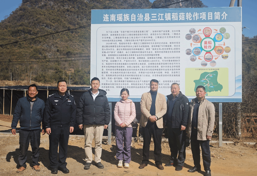 为贯彻落实省委“1310”具体部署和清远市委“十大行动方案”,响应“百千万人才”助力“百千万工程”号召,助力清远市连南瑶族自治 县“百千万高质工程”、绿美广东生态建设,best365官方网站广东省农村科技特派员刘文俊教授、支庆庆博士及农艺与种业研究生修佳月一行于1月13日至14日赴清远连南瑶族自治县开展产业调研及科技帮扶工作。围绕2024年12月叶贞琴主任在连南考查调研中,对黑山羊健康养殖和稻菇轮作项目提出的要求,特派员团队在驻镇帮扶工作队邓宇恒队长带领下,首先调研了连南三江镇稻菇轮作项目,详细了解了项目的种植及管理模式以及生产效益等方面,并与项目负责人及驻镇帮扶工作队进行了讨论,帮助联系周边的菌棒加工资源,提出在本地建立小型菌棒加工厂的建议。随后,特派员团队一行前往三江镇黑山羊养殖产业园进行调研。在公司负责人的陪同下,团队考察了园区建设情况及黑山羊的繁育情况,并与公司负责人就黑山羊科学养殖、种养一体化发展、园区生态经济循环及品牌打造等方面进行了探讨。特派员团队计划帮助企业引入人工授精技术和专家,并计划在南药种植及非粮饲料加工替代等方面加大关注,发挥高校知识和人才密集优势,在连南县农业农村局的支持下,开展对当地农民养殖和种植技术培训工作。