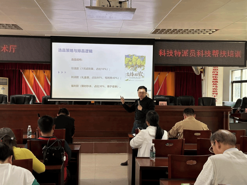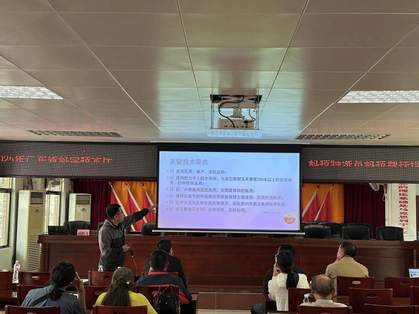 3月25日上午,科技特派员团队在长岐镇人民政府举办专题培训班,各村村民、农业企业代表等30余人参与。刘鹏飞教授以《鲜食玉米高产高效栽培技术》为题,从品种选择、水肥管理到病虫害防控进行系统讲解;胡高喜副教授则聚焦《农产品直播带货实操技巧》,结合案例解析电商销售新模式。培训现场还免费发放玉米新品种种子,并针对农户提出的种植难题逐一解答,获得热烈反响。长岐镇党委副书记、驻镇帮镇扶村工作队队长张平主持会议并强调:“科技帮扶为乡村振兴提供了有力支撑,期待专家团队与地方深化合作。”