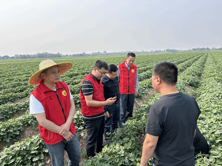 当日下午,特派员团队与驻镇工作队深入荣丰农业公司百亩番薯基地,针对土壤肥力不足、病虫害频发等问题,提出“优选抗病品种、增施有机肥、推广全程机械化”等解决方案,提升亩产效益。在粤华种植有限公司,团队建议优化作物布局、完善灌溉设施,并推动“共享农机”服务模式落地,解决小型农户机械使用成本高的痛点,并对产后营销及品牌建设等方面提出相关建议。