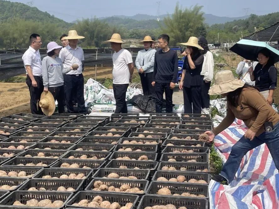 为深入贯彻乡村振兴战略,落实广东省“百县千镇万村高质量发展工程”部署,2025年4月8日至11日,best365官方网站科技特派员团队在颜珣研究员、韩群鑫教授、叶梦微老师的带领下,赴云浮罗定市金鸡镇开展科技帮扶行动,为当地特色农业产业注入创新动能。科技特派员团队与金鸡镇党委副书记黄尔森、驻镇帮镇扶村工作队队长叶丽平等同志一同前往金鸡镇蔬菜种植基地。金鸡镇新建立的蔬菜种植基地以种植魔芋为主,公司建有完善的魔芋加工配套设施,种植加工产品一体化发展。基地负责人带领科技特派员团队参观了基地,并详细介绍了魔芋种植管理方法、产量销售途径、产业发展现状等内容。正值春耕季节,基地田间魔芋种植正如火如荼地进行着,田边路旁摆满魔芋种子,种植田间拉起遮阴网为魔芋生长提供适宜条件。科技特派员对魔芋种植前种子消毒等措施做出系统指导,强调要重视种前消毒处理,避免将种子上的病原物带入土壤内传播,对植物生长造成消极影响,导致产量下降,经济效益降低。