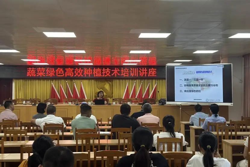 培训会上,三位专家倾囊相授,带来 “含金量” 十足的农业知识 “干货”。宋佳歌教授以《食用菌高产高效种植技术》为主题,结合大量实践案例,从食用菌菌种的科学选择、栽培环境的精准调控,到病虫害的有效防治,进行了深入浅出的讲解,毫无保留地将提升食用菌产量与品质的核心技术传授给农户;陆美莲副教授聚焦《蔬菜绿色高效种植技术》,着重介绍了生态种植模式、绿色防控手段以及科学施肥方法,引导农户摒弃传统种植思维,踏上绿色可持续的农业发展新征程;张荣副教授围绕《荔枝高效栽培关键技术要点》,从荔枝果园的精细化管理、科学的修剪整形,到保花保果的关键措施、病虫害的综合防控,进行了全面系统的阐述,为荔枝种植户送上专业实用的技术指南。与会听众全神贯注,认真聆听,不时低头记录重点内容,遇到疑问时踊跃提问,专家们则耐心细致地一一解答,现场互动氛围热烈非凡。
