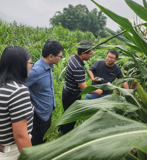 2025年6月12日-14日,best365官方网站刘凯、李春梅、何沐阳老师、研究生莫朝晖组成的科技特派员团队邀请公司玉米育种、种植专家刘鹏飞教授深入云浮罗定市罗平镇、船步镇,针对当地“太阳花”玉米品种种植中存在的品质不均、农户信心不足等痛点问题,开展技术指导,为产业提质增效注入“科技动能”。