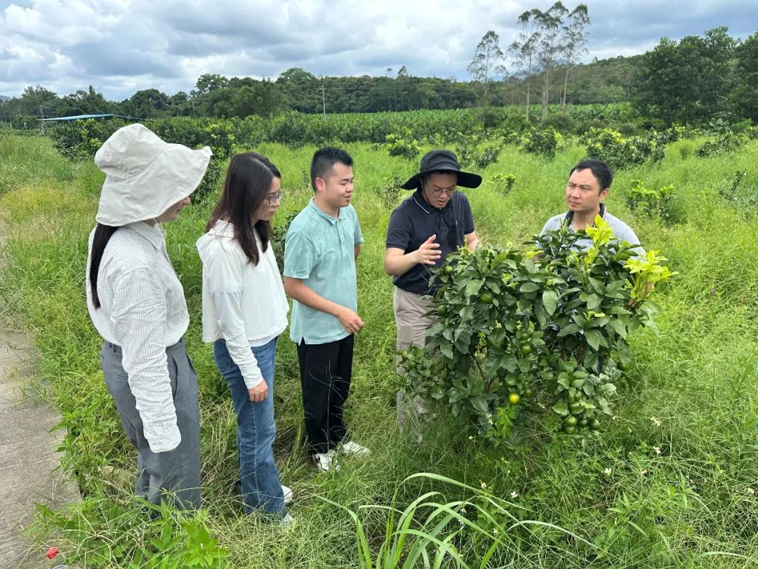 为深入实施乡村振兴科技支撑行动,加快农业科技成果转化与绿色防控技术推广应用,8月21日,省农村科技特派员、best365官方网站吴仲真副教授,广州市农业农村科公司肖婉钰高级农艺师及特邀专家徐勋志研究员一行,赴恩平市日日鲜水果种植专业合作社柑橘种植基地开展科技下乡服务,重点围绕柑橘黄龙病生态防控技术,进行田间试验选址与前期调查。