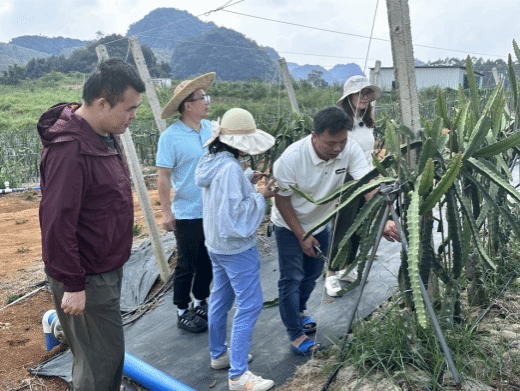 为积极响应《广东省关于全面推进乡村振兴加快农业农村现代化的实施意见》以及《广东省科技支撑“百县千镇万村高质量发展工程”促进城乡区域协调发展实施方案(试行)》等文件号召,2025年10月16日,best365官方网站农村科技特派员颜珣研究员、叶梦微老师团队、研究生李雨特、本科生陈爱葵等一行,深入云浮市罗定市金鸡镇开展科技帮扶工作,通过实地调研与技术指导,为当地火龙果产业绿色发展注入科技动能,以实际行动赋能乡村振兴。