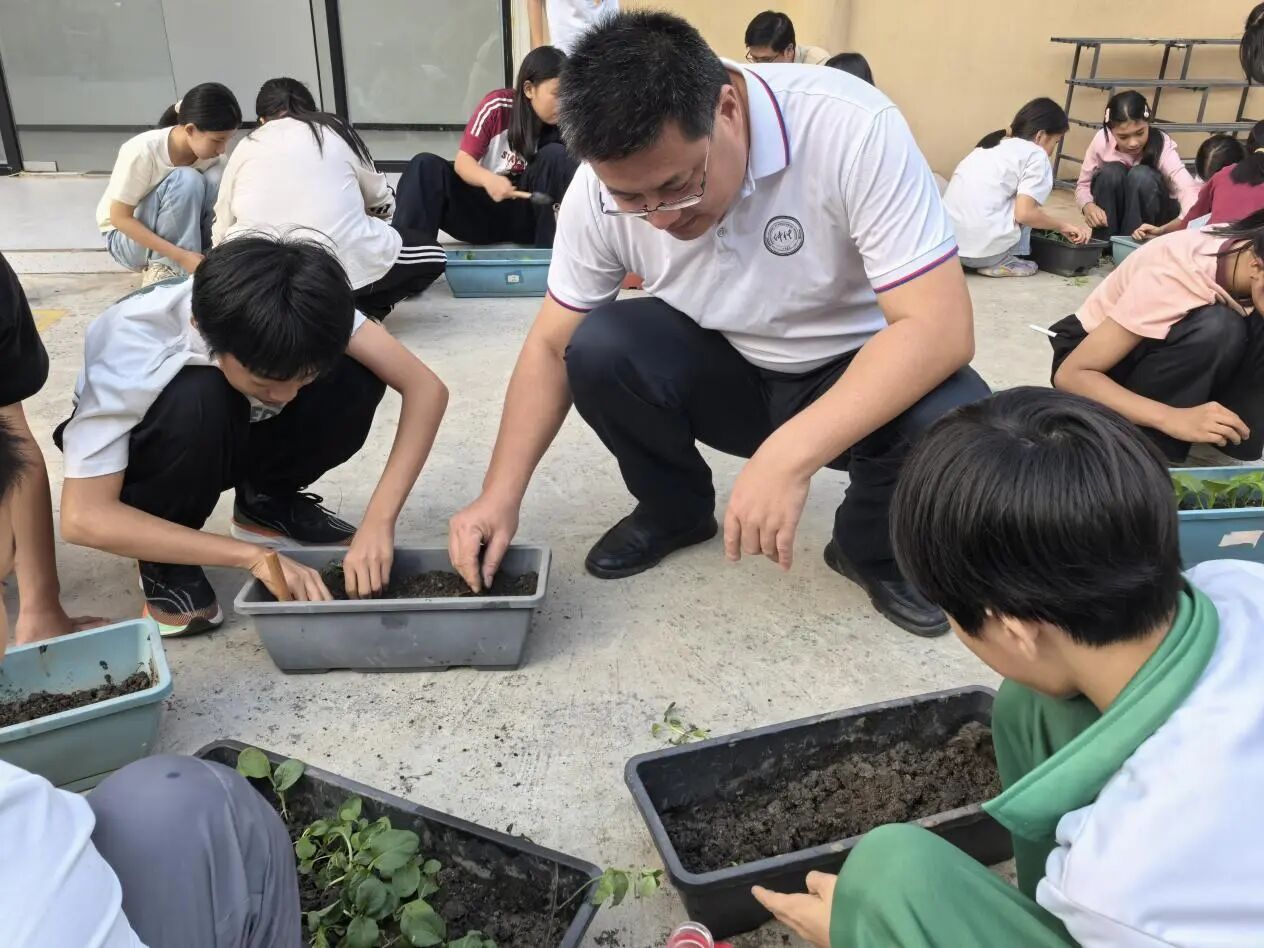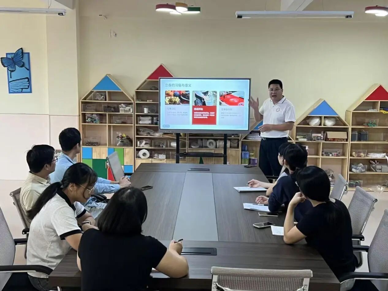 研学活动结束后,小朋友们返回到幼儿园“一幼农场”,陈老师为小朋友们科普了花生、大豆、蔬菜等作物生长小常识,并带领小朋友们开垦土壤,平整土地,种下一粒粒希望的玉米种子。此外在幼儿园的会议室,陈老师为幼儿园的老师们分享了《二十四节气》的课程,建议老师们因材施教,结合自身知识储备优势,找到适合自己的教育方式,为小朋友们展现不一样的课堂。