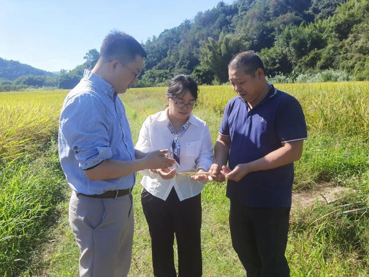 随后,团队前往溪口村紫米种植基地开展收获前专项调研。科技特派员们深入田间,仔细查看紫米的长势、穗粒发育情况,详细询问种植户在种植过程中遇到的水肥管理、病虫害防治等问题,现场记录产量预估数据,分析当前生长阶段的管理重点,并针对收获时机、晾晒储存等后续工作给出专业建议,确保紫米丰收并保障品质。“有专家帮我们把关,今年紫米的收成肯定差不了!之前遇到的病虫害问题,经你们指导后都解决了,太感谢了!” 种植户刘叔向团队分享了种植成效。