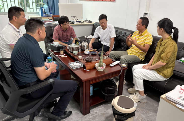 科技特派员团队一行先与镇政府领导,驻镇工作队及油茶种植企业相关技术人员进行了座谈交流。广州市驻连南县三排镇工作队队员兼南岗村第一书记李香占介绍了三排的文化历史及旅游资源。他指出结合当地石漠化治理,可将油茶种植与民族旅游、生态旅游相结合,实现油茶一二三产融合发展。特派员团队对此表示赞同。随后,油茶林地负责人详细介绍了三排镇油茶基地规划建设方案,相关政策支持及项目实施进程等情况。针对三排镇千亩油茶规模种植项目的实施方案及产量收益等问题,李永泉教授从多方面给出了指导意见:一是根据省政策指引,选择适合连南种植的油茶主推品种,要做好前期调研,谨慎选种;二是经营管理模式问题,要规范种植,科学管理,建立监管机制,切实保证百姓利益。三排镇镇长邓祎强表示李经理专业的建议让他受益良多,希望能与仲恺建立校企合作,为三排油茶产业发展引入仲恺科技力量。双方进一步开展了细致而深入的交流,就合作达成了初步共识。