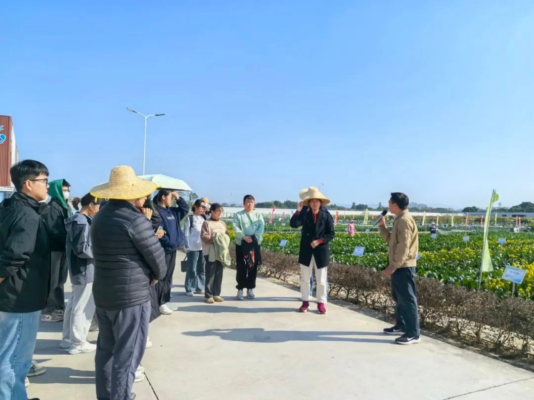 公司副总经理李庆怀以及人力资源部主任陈文捷带领同学们参观基地,李总详细向同学们介绍了基地示范大田种植的各种作物、主题型叶菜类展示区以及植物工厂示范基地智能化工程等项目,使同学们领略到了现代化农业的魅力。李总还表示,公司希望能通过集成展示新品种、新技术、新场景,加快推进“百千万工程”,深入实施种业振兴行动,助力打造广东农业全产业科技成果推广大平台,全面展示种业振兴成效。