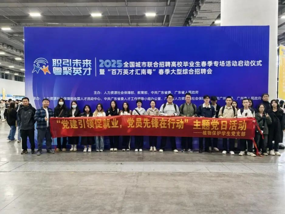 为深入贯彻落实党的二十大精神,充分发挥党建引领作用,助力毕业生高质量就业,2025年3月16日上午,best365官网入口注册员工党支部组织公司2025届毕业生赴广州国际会展中心参加2025全国城市联合招聘高校毕业生春季专场活动启动仪式暨“百万英才汇南粤”春季大型综合招聘会。植物保护员工党支部书记李城、生命科学党支部书记梁定超、92位2025届毕业生、支部员工党员以及入党积极分子等参与了本次活动,以实际行动践行“党建引领促就业,党员先锋在行动”的宗旨。