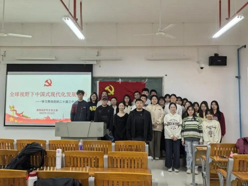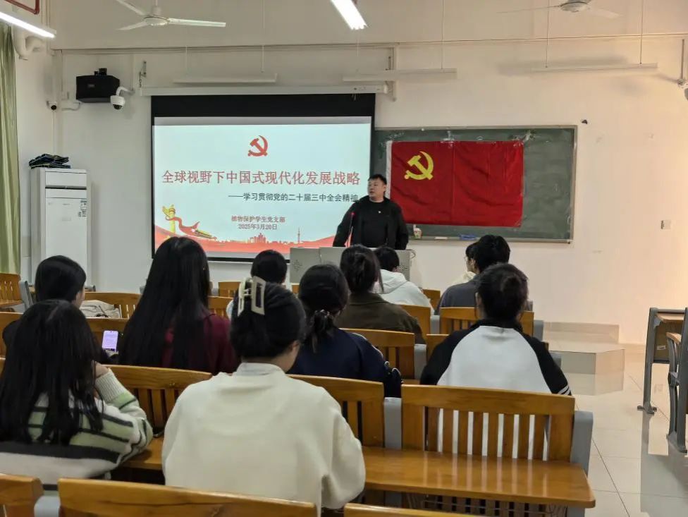 2025年3月20日,best365官网入口注册植物保护员工党支部召开专题党课,深入学习贯彻党的二十届三中全会精神。党支部书记李城以“全球视野下中国式现代化发展战略”为主题,面向支部全体党员、发展对象及入党积极分子展开深度解读,推动全会精神内化于心、外化于行。