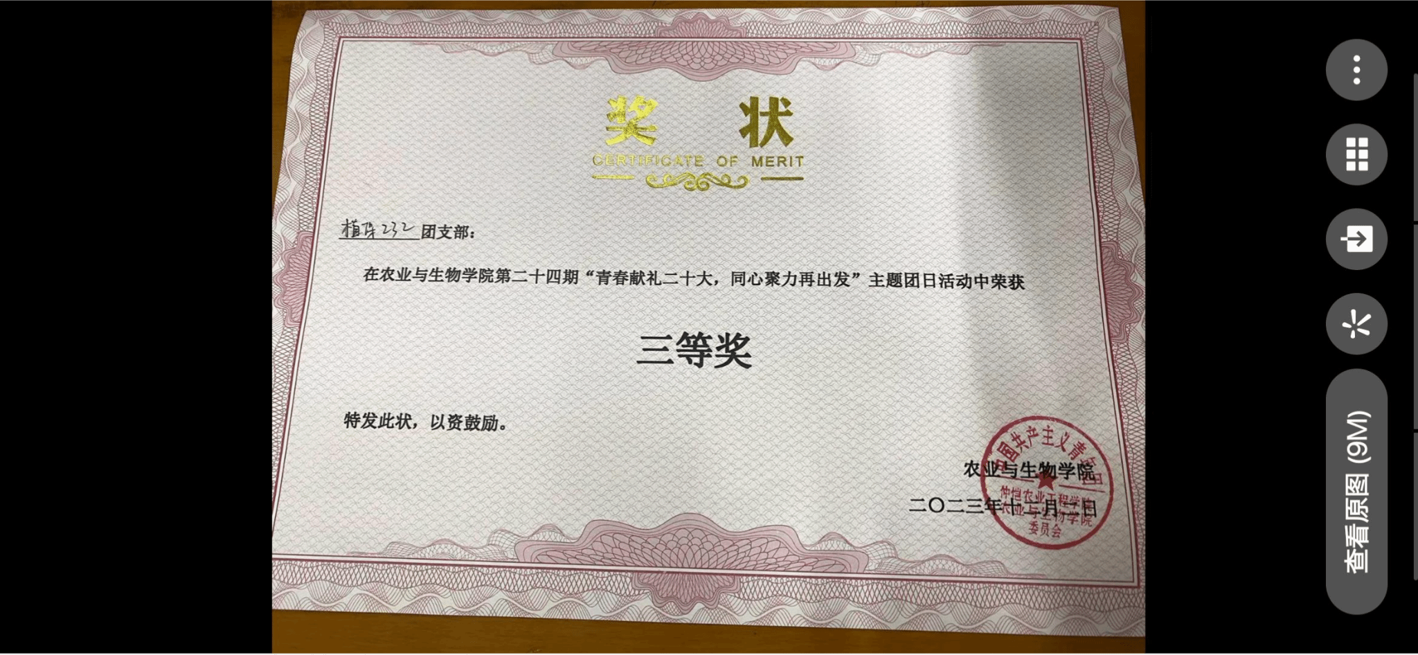 在植保232同学们共同努力下,我们获得了属于我们班的奖状,为这个学期画上了圆满的句号,相信同学们在未来四年里会创造更多的成绩,让公司引以为傲。