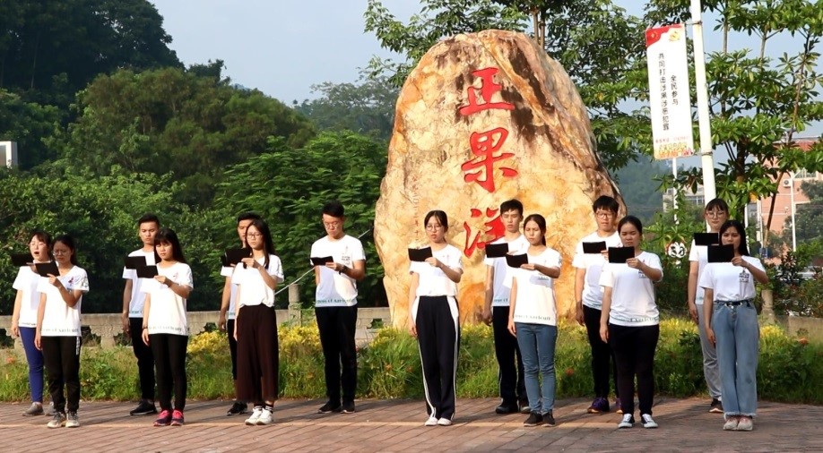 下午,仲系农情小分队全体队员在正果中学广场集合,进行“追寻红色印记,传承红色基因”的视频拍摄。“我志愿加入中国共产党,拥护党的纲领,遵守党的章程……”面对蓝天白云,全天同学再一次向党旗庄严宣誓。炎炎夏日,朗朗乾坤,入党的誓词久久回荡在每一位队员心中,不忘初心,牢记使命,红色教育,永葆青春。紧接着,在正果洋进行《正果行——振国兴》的诗朗诵。