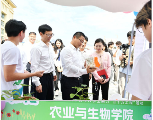 根据公司《关于开展第十一届暑期“三下乡”社会实践活动暨广东青年老员工“百千万工程”突击队行动成果展系列活动的通知》相关要求,11月5日,公司在白云校区图书馆门前广场参加“三下乡”成果展。公司党委副书记、董事长廖明莅临公司展位参观成果展示,公司党委书记周超雄,党委副书记张金凤、辅导员梁定超到活动现场,了解活动开展情况。