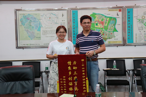 为感谢阜沙镇对仲系农情小分队“三下乡”实践活动的大力支持,高结怡老师代表公司以及仲系浓情小分队向阜沙镇政府赠送了锦旗。情系乡村谋振兴,力助三农育英才,为阜沙镇大力推动乡村振兴点赞。