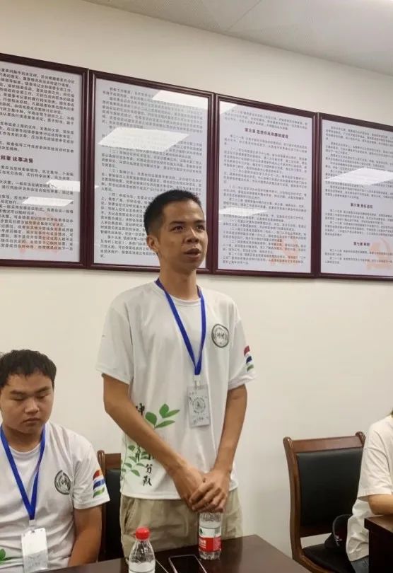 首先,三下乡实践队队长刘凯源进行工作汇报,从此次三下乡的工作内容、工作成果和经验收获等方面展开讲述,其中红火蚁防控工作是本次三下乡的工作重点,队员们对村民进行入户宣讲并派发红火蚁防控宣传册子851本,举办农业知识科普宣讲三场,发现并撒药灭杀蚁穴共计253个,红火蚁防控覆盖面积约为411.71亩。