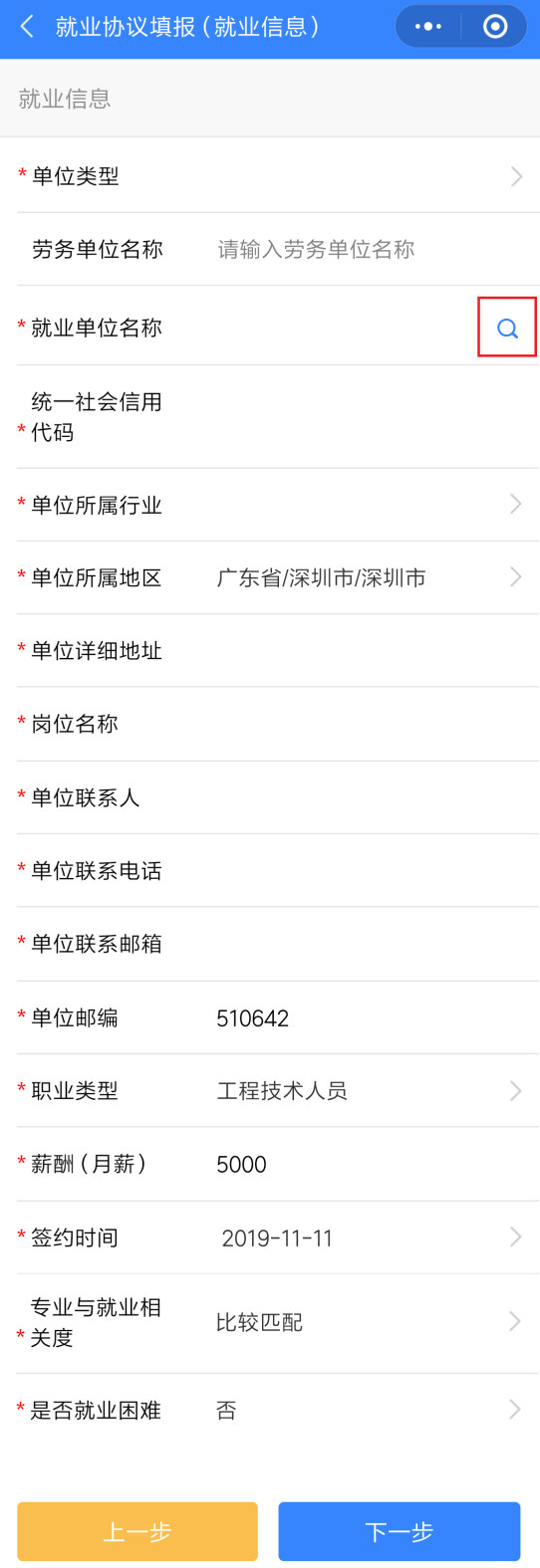 (3)★就业单位名称:填写签约单位全称,须与工商注册或法人代表证一致的名称;可点击“