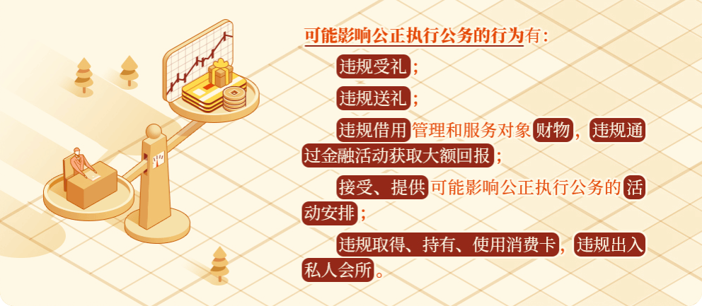 这里的“可能影响公正执行公务”,是指与党员、干部职权相关联,与其公正履职相冲突,可能导致不公正执行公务。