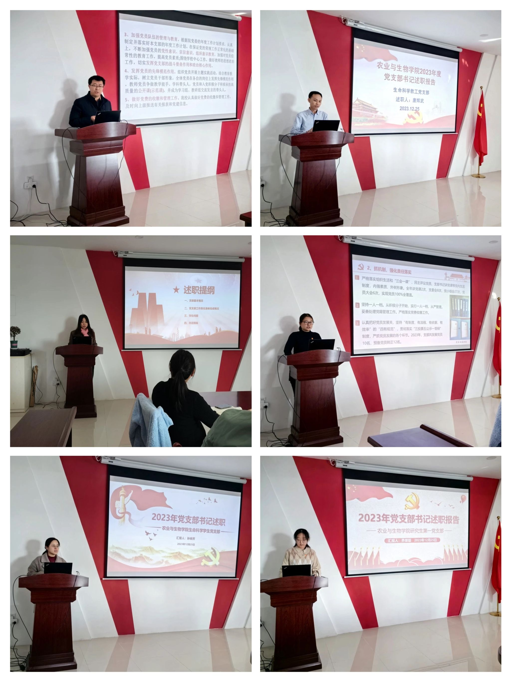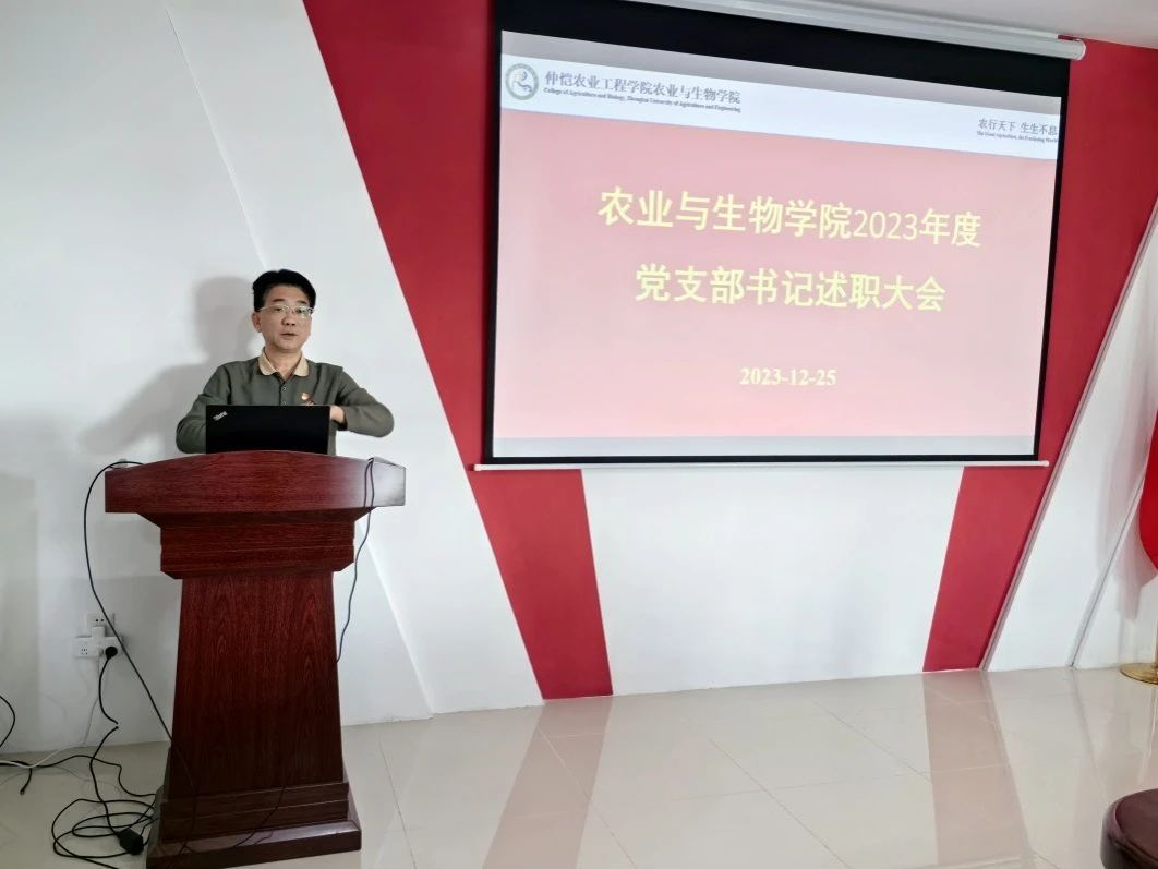 根据公司党委《关于做好2023年度党组织书记抓基层党建述职评议考核工作的通知》(仲组字〔2023〕25号)精神,12月25日下午,农业与生物公司党委在生科A607召开2023年度党支部书记述职评议大会。会议由公司党委书记周超雄主持,公司党委委员,各党支部书记、支部委员和办公室副主任参会。