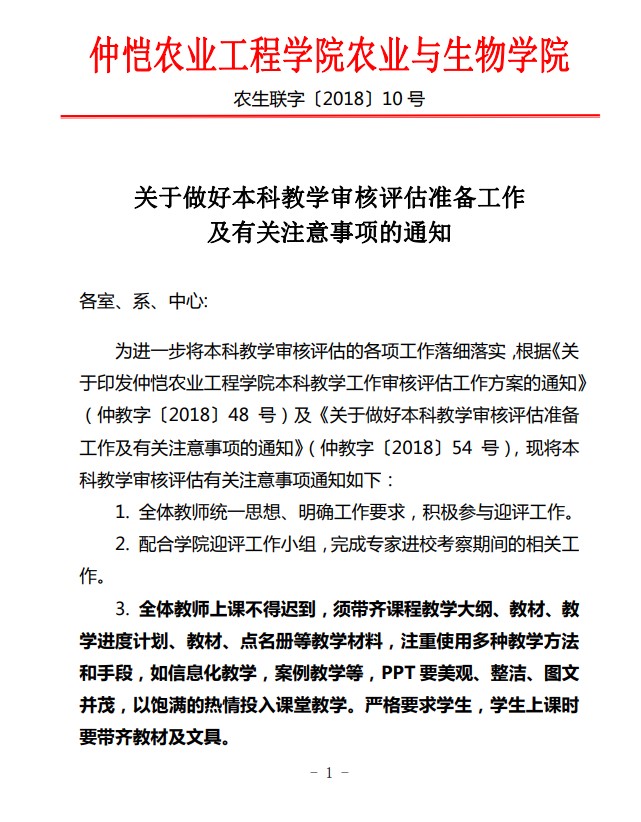 农生联字〔2018〕10号-关于做好本科教学审核评估准备工作及有关注意事项的通知