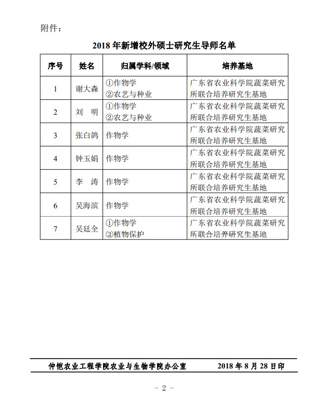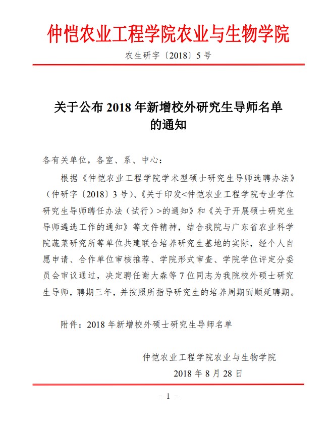 农生研字(2018)5号-蔬菜所-关于公布2018年新增校外研究生导师名单的通知
