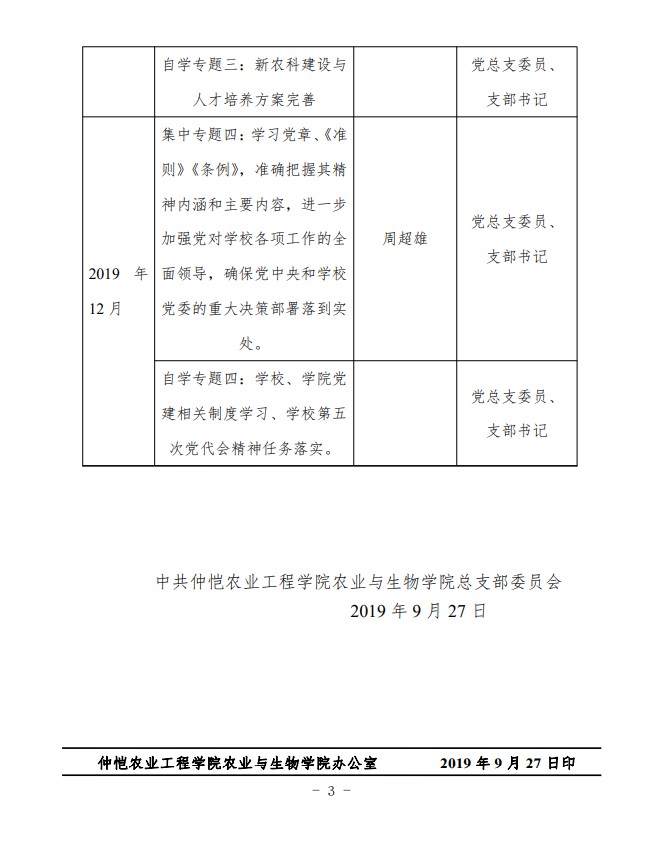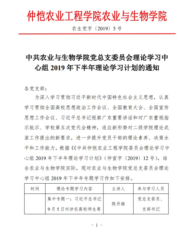 农生党字〔2019〕5号-中共农业与生物公司党总支委员会理论学习中心组2019年下半年理论学习计划的通知