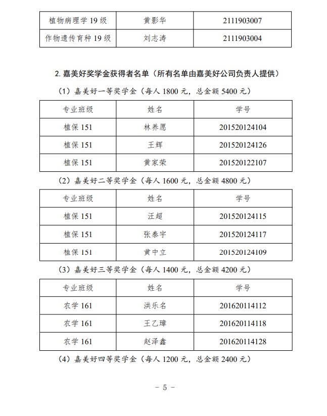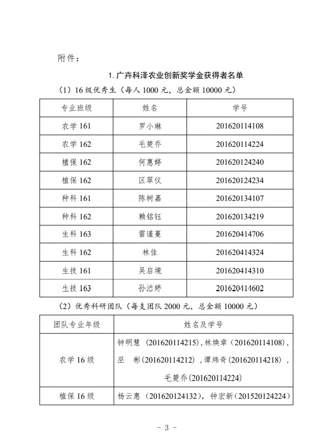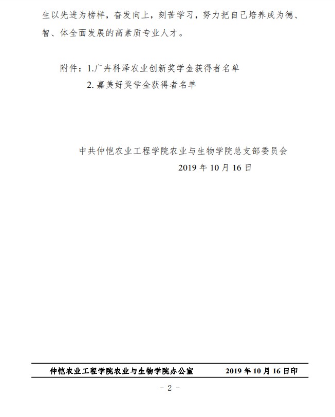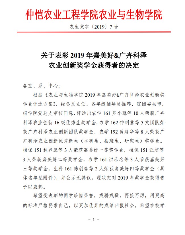 农生党字〔2019〕7号-关于表彰2019年嘉美好&广卉科泽农业创新奖学金获得者的决定