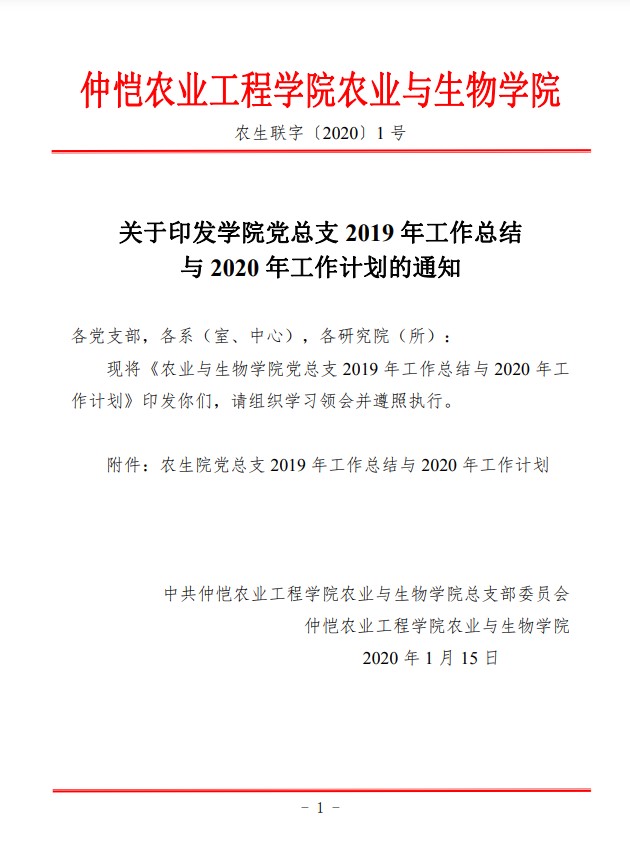 农生联字〔2020〕1号-关于印发公司党总支2019年度工作总结的通知
