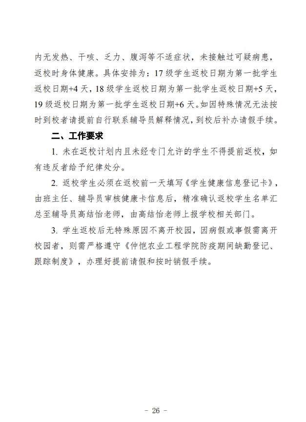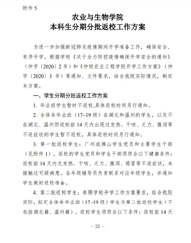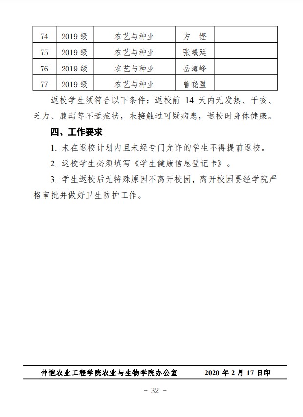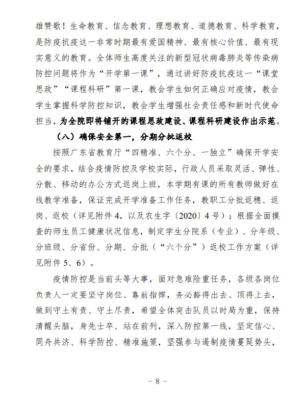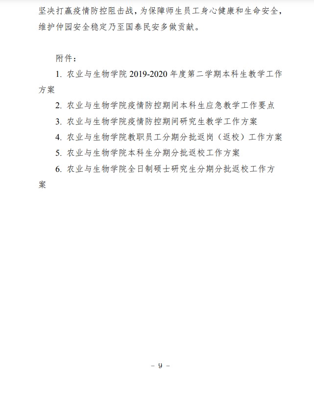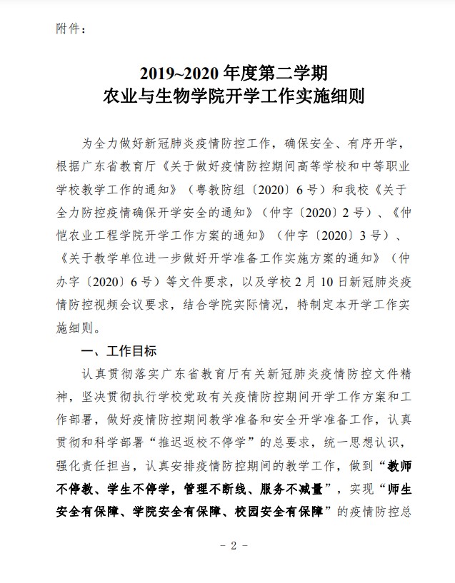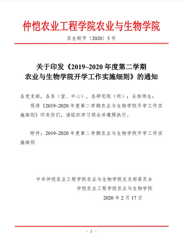 农生联字〔2020〕5号-关于印发2019-2020年度第二学期开学准备工作实施细则的通知