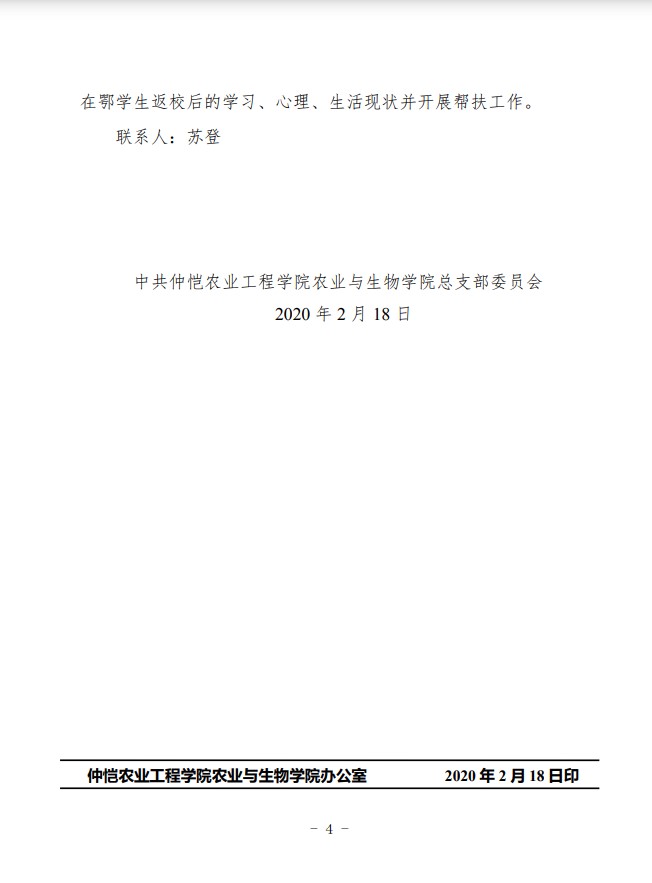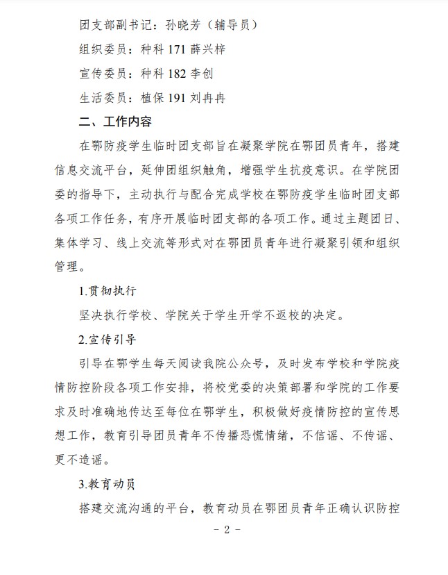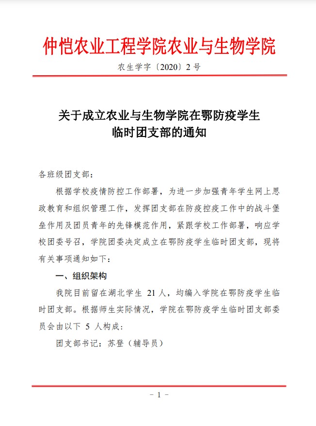 农生学字〔2020〕2号-关于成立best365官网入口注册在鄂防疫员工临时团支部的通知