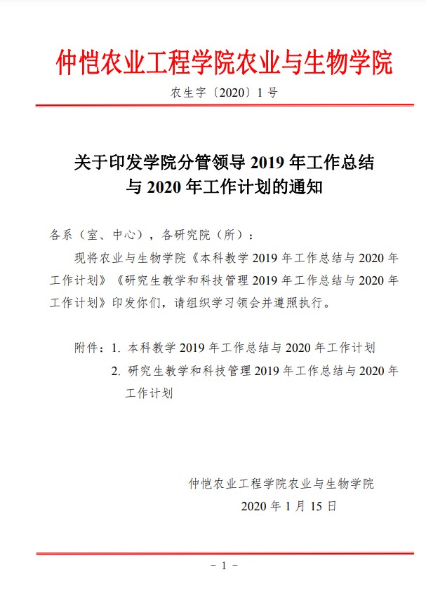 农生字〔2020〕1号-关于印发公司分管领导2019年度工作总结的通知