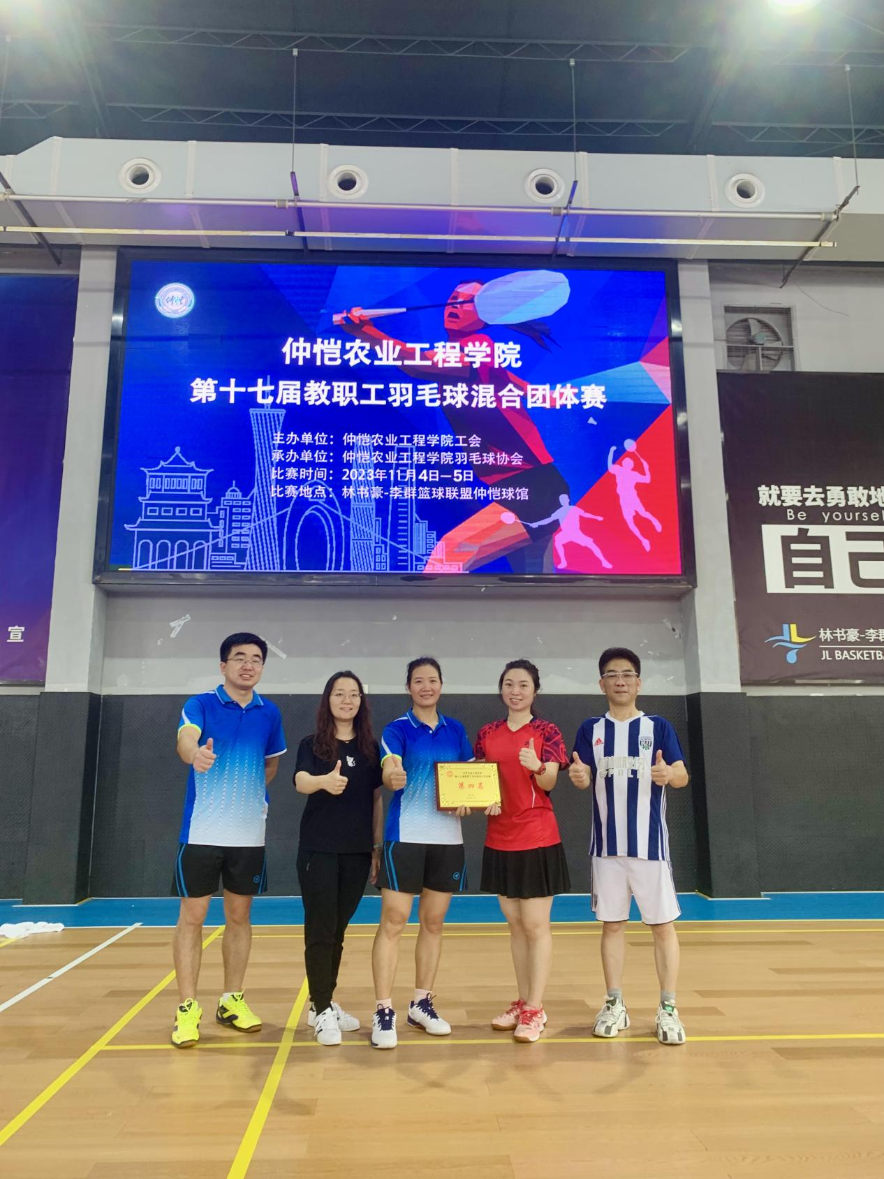 11月4日-5日,由校工会主办、体育公司承办的第十七届教职工羽毛球混合团体赛在海珠校区南区顺利举行,公司代表队经过顽强拼博,在小组赛、淘汰赛上一路过关斩将,最终夺得第四名的佳绩。