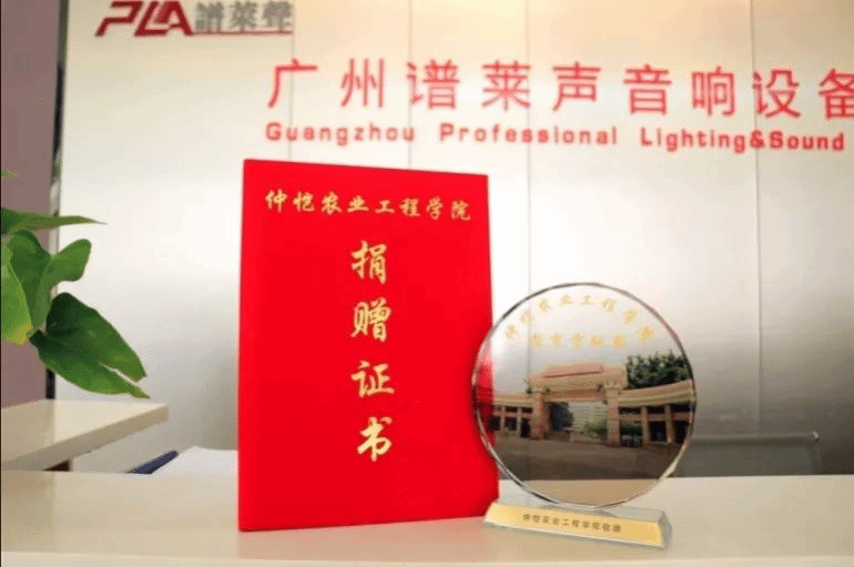 4月15日广州谱莱声音响设备有限公司总经理林海彬先生代表捐资百万元,授予“教育贡献奖”牌匾