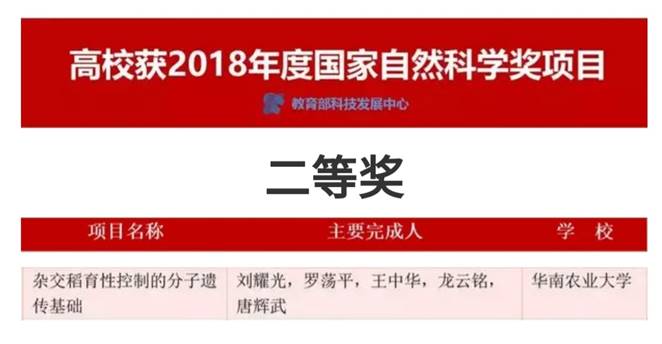 公司07届杰出员工唐辉武博士作为主要完成人所参与的项目的《杂交稻育性控制的分子遗传基础》荣获2018年度国家自然科学奖二等奖。