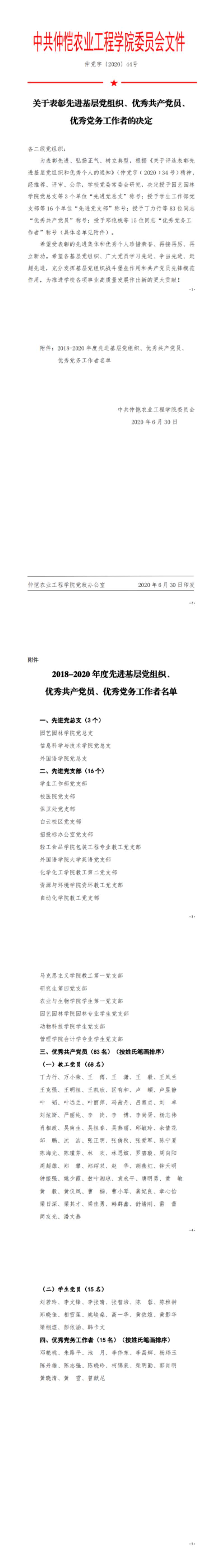 6月30日,中共best365官方网站委员会发布《关于表彰先进基层党组织、优秀共产党员、秀党务工作者的决定》。