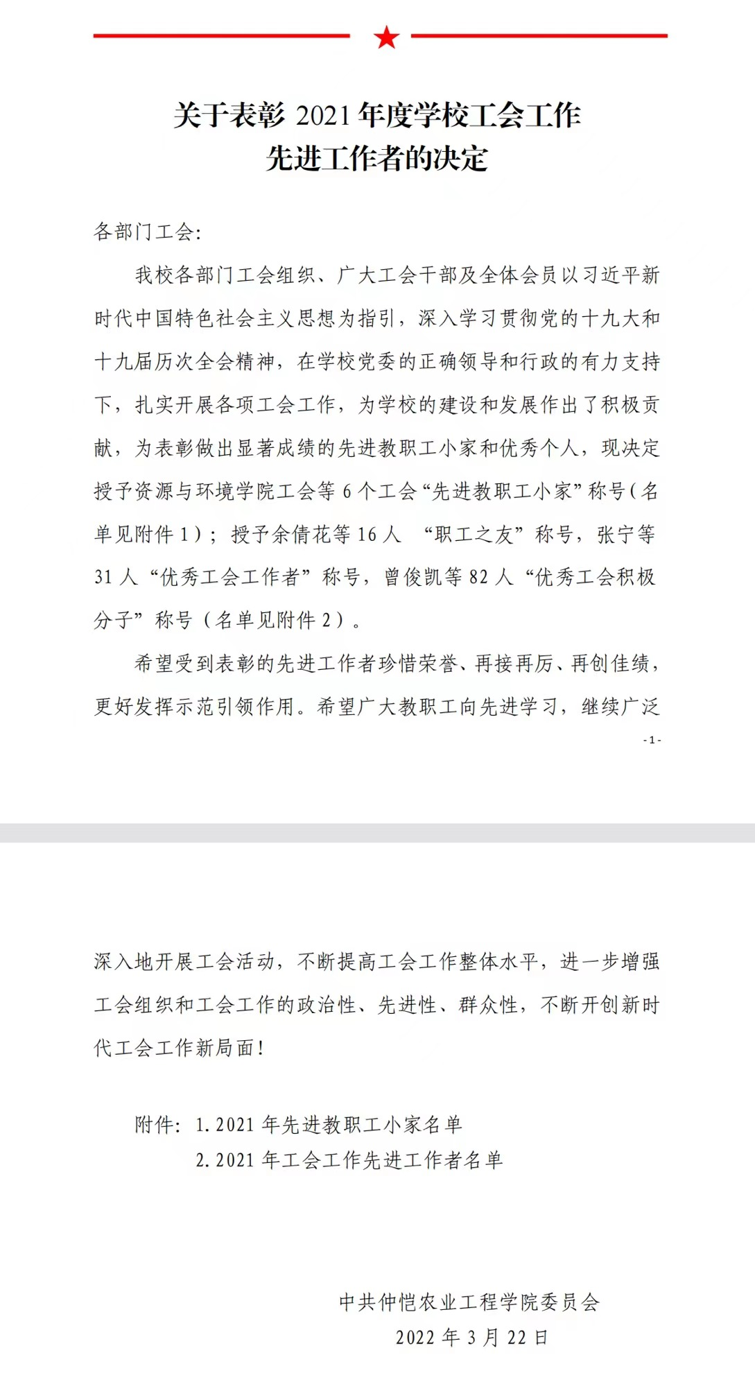 本次表彰是对公司过去一年的工会工作进行了总结,对公司工会工作的优秀个人给予了充分的肯定。见贤思齐,本次表彰不仅对表现优异的老师给予了进一步的鼓励,并且给公司师生树立了良好的榜样,激发了同志们的学习、工作热情。希望全体农生人不忘初心、团结奋斗、积极进取、精诚团结、携手共进、再创佳绩。
