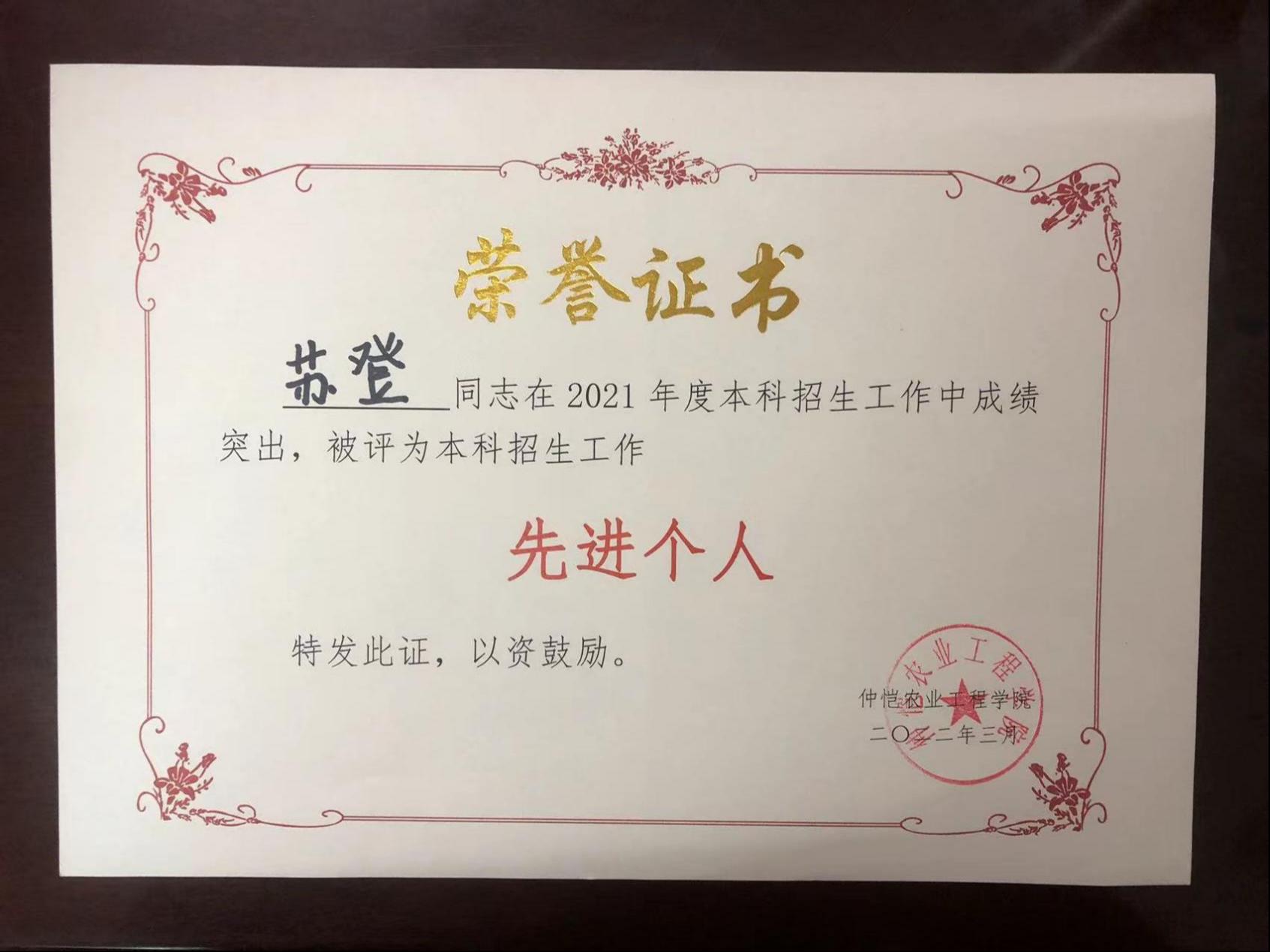 根据《best365官方网站本科招生工作评优方案(试行)》(仲教字〔2021〕26 号)、《关于评选和表彰2021年度本科招生工作先进集体和先进个人的通知》(仲教字〔2021〕58 号)等文件规定,经单位推荐、专家评审并公示,评选出8个本科招生工作先进集体、17名本科招生工作先进个人,其中,best365官网入口注册荣获“本科招生工作先进集体”,苏登老师荣获“本科招生工作先进个人”。