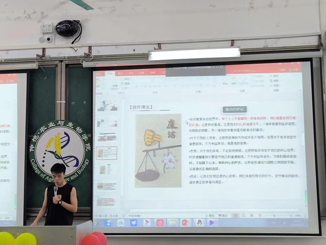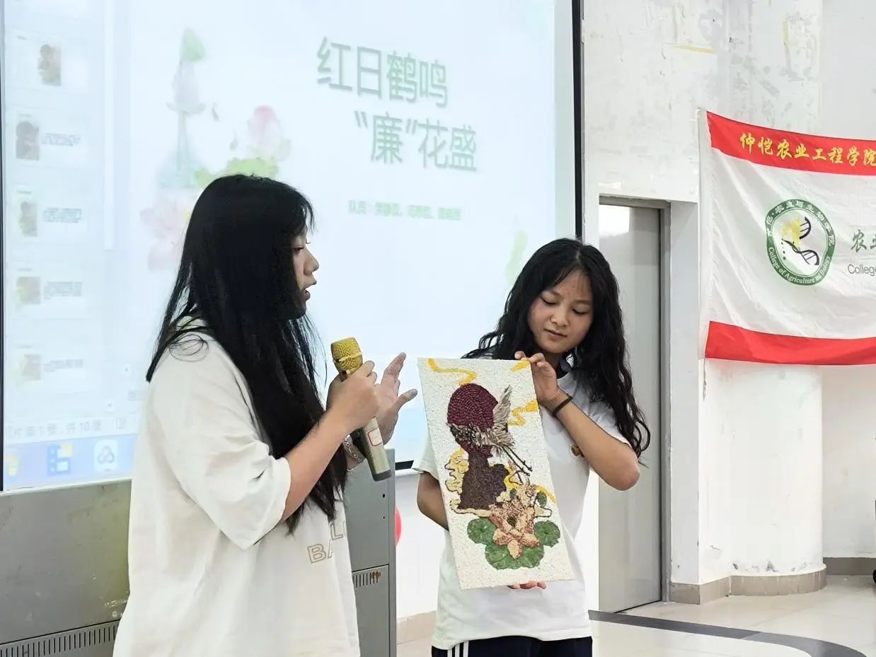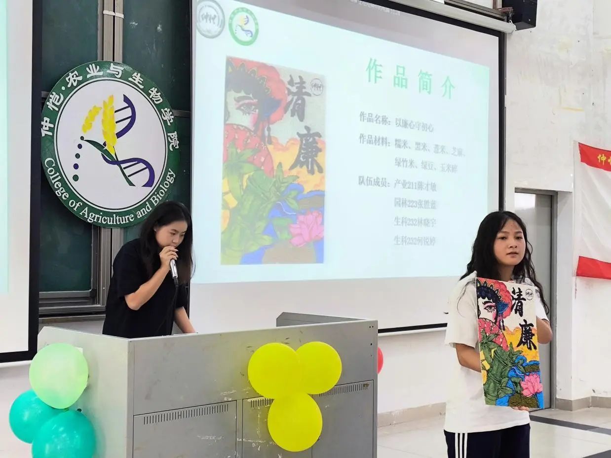 在20支队伍讲解完各自的作品后,在计分过程中,进行了温暖廉洁知识问答环节,充分调动现场的气氛,增添了本次活动的趣味性的同时,也增强了同学们对种子的认识。