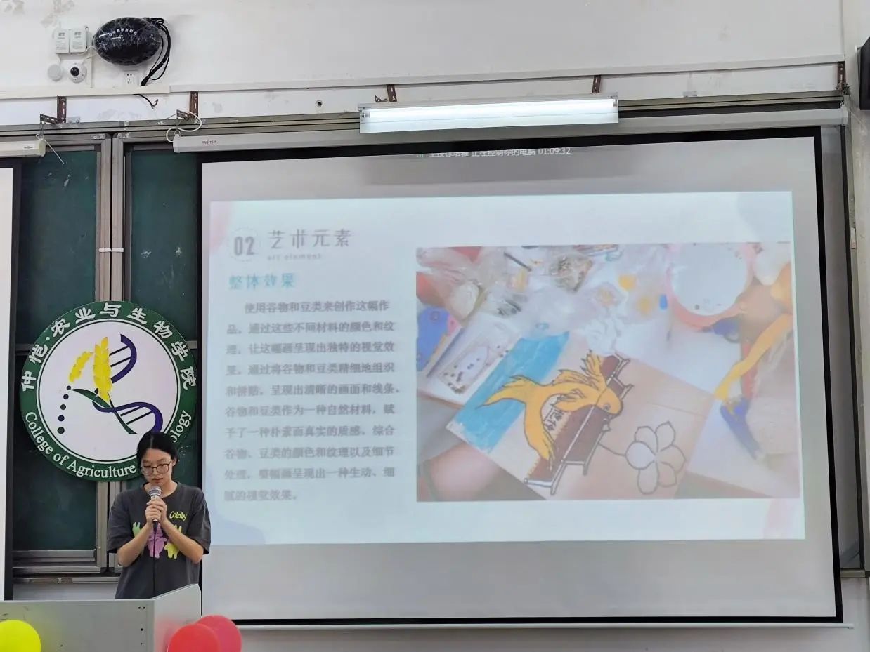 公布比赛结果后,李彩琴老师对比赛进行点评。李老师表示,各队伍的切题的构思给她留下了深刻的印象,每一份作品都做工精细,具有很好的观赏性,也让同学们感受种子人们生活带来的便利,并鼓励同学们积极参与种子画比赛,希望下一届种子画大赛能够看到更多优秀的作品。